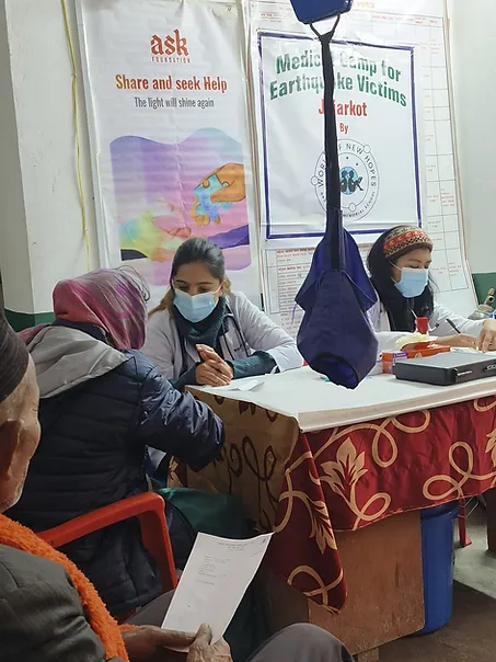 In response to urgent post-quake health needs in Jajarkot, Ask Foundation, in collaboration with Nepal Rising, NAG, 100s Group, HAPSA, and other organizations, distributed supplies and conducted a health camp in Jajarkot-12, covering over 500 patients and providing supplies for 300 mothers and newborns.