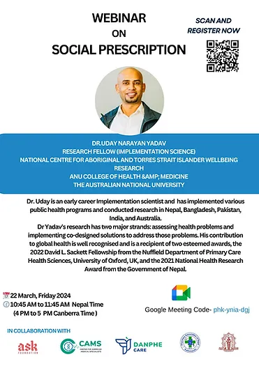 A webinar on March 22nd, led by Dr. Uday, focused on Social Prescription, providing enlightening insights.