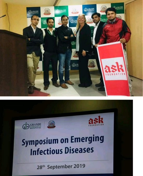 In January 2017, an Infection Control Presentation and Workshop was held at Grande Hospital, in collaboration with NCCDF under the leadership of ASK Foundation. The workshop covered the preparation of antiseptics and disinfectants, training on isolation types, proper use of N-95 masks, aseptic gloving techniques, hospital waste management, avoiding cross-contamination, collecting microbiological samples, antibiotic stewardship, and interpreting antibiograms. Lectures on multidrug-resistant Gram-negative bacteria and MDR TB were also given. Approximately 100 participants, primarily nursing staff, lab technicians, and a few physicians, attended.
